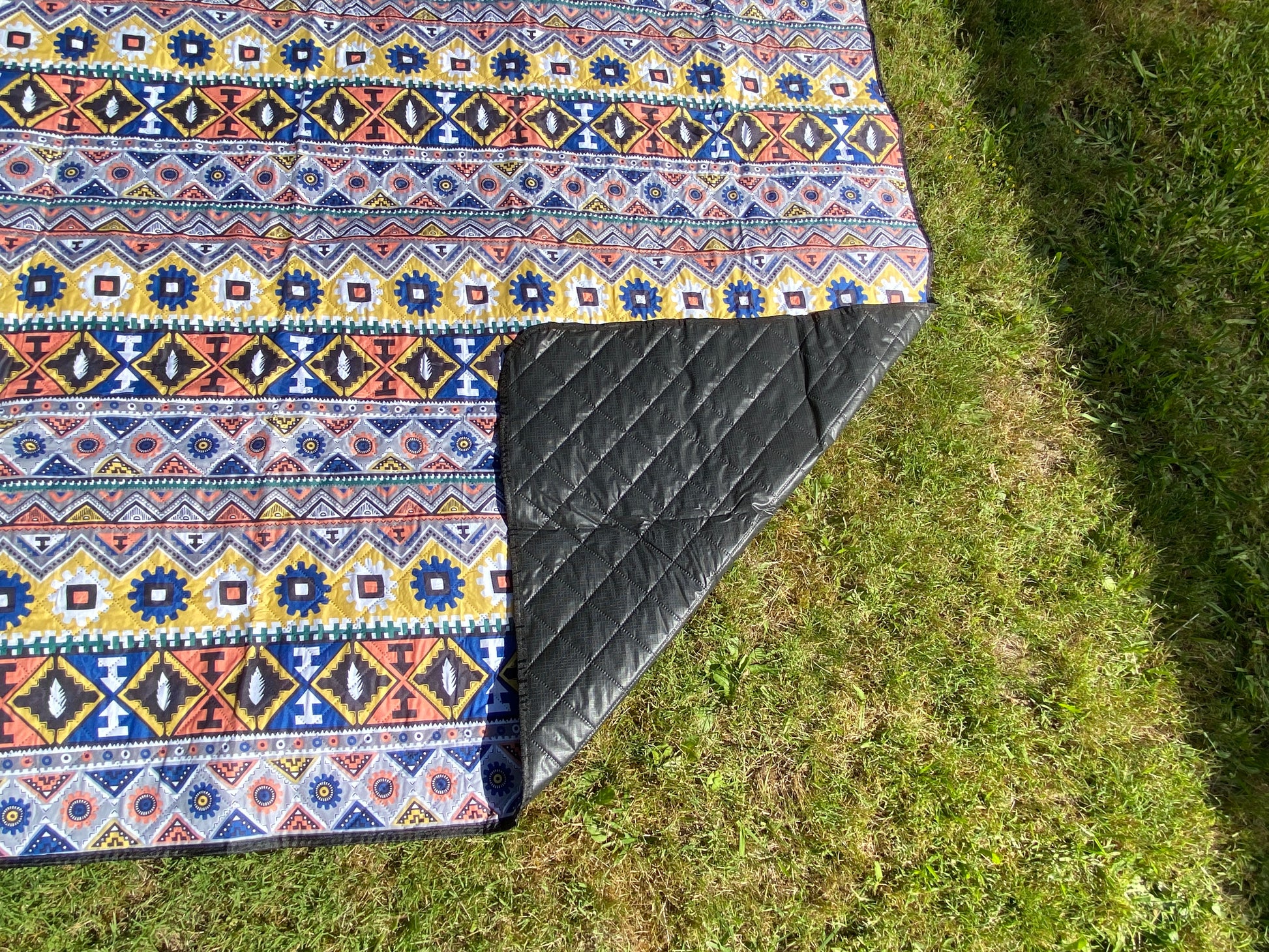 una combinación perfecta de estilo, comodidad y practicidad para todas tus aventuras al aire libre. Con unas dimensiones espaciosas de 2 metros por 2 metros, este tapete ofrece un amplio espacio para que familiares y amigos se relajen y disfruten juntos del aire libre. El patrón vibrante y colorido evoca el rico tapiz cultural de Australia y agrega un toque de encanto único a sus picnics, salidas a la playa y viajes de campamento.