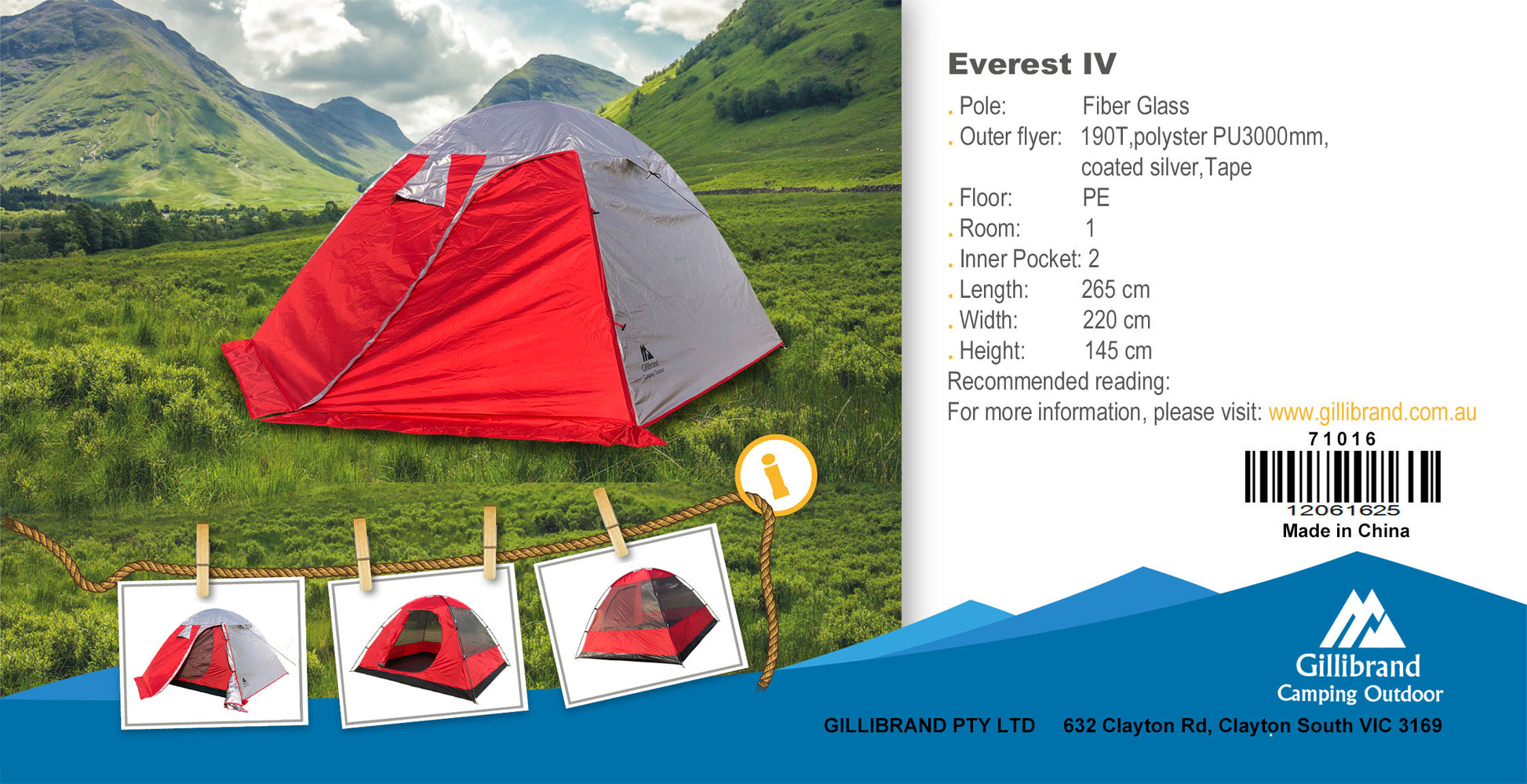 - **Material:** 190T polyester PU3000mm coated silver flyer, PE floor