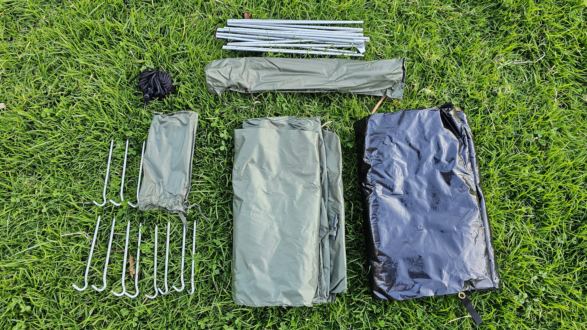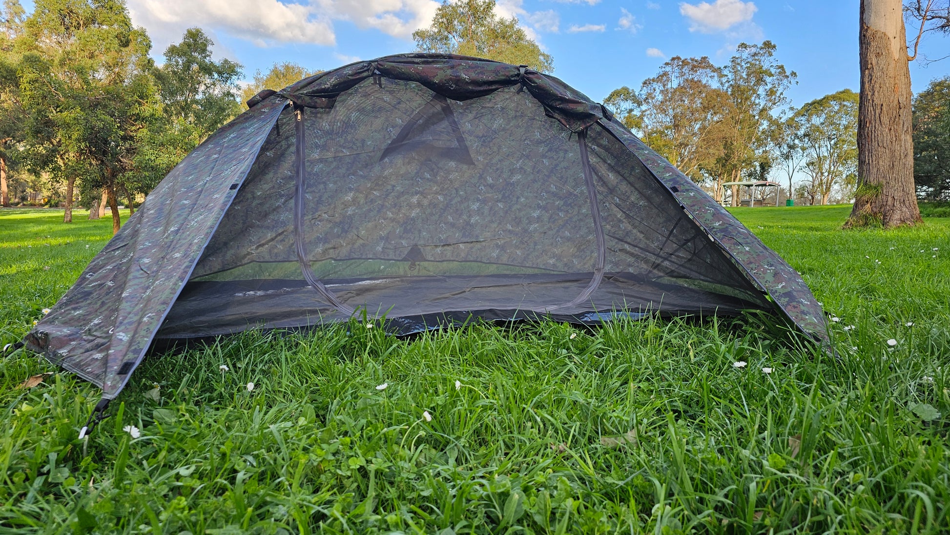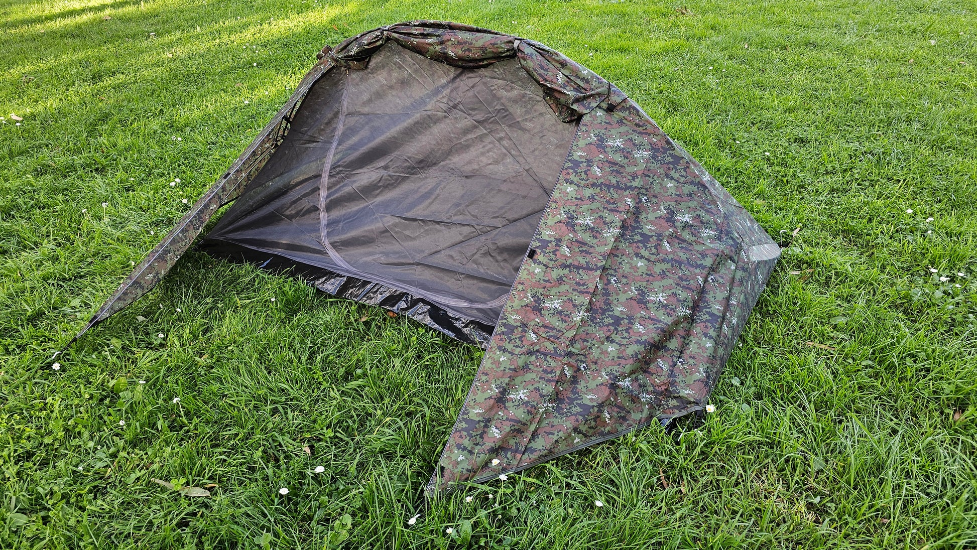 - **Flysheet:** Polyester, 5,000 mm water column, taped seams, camouflage