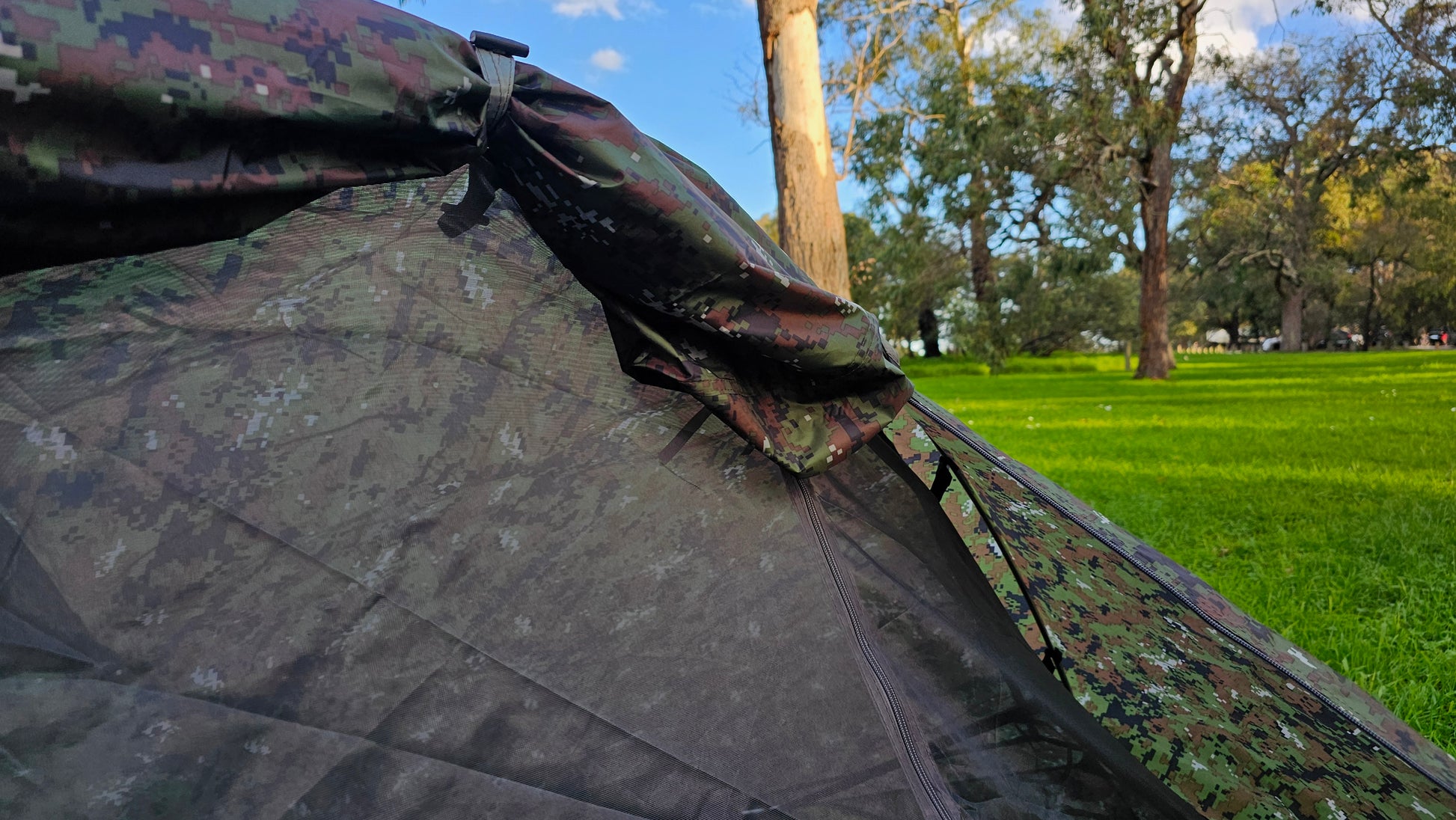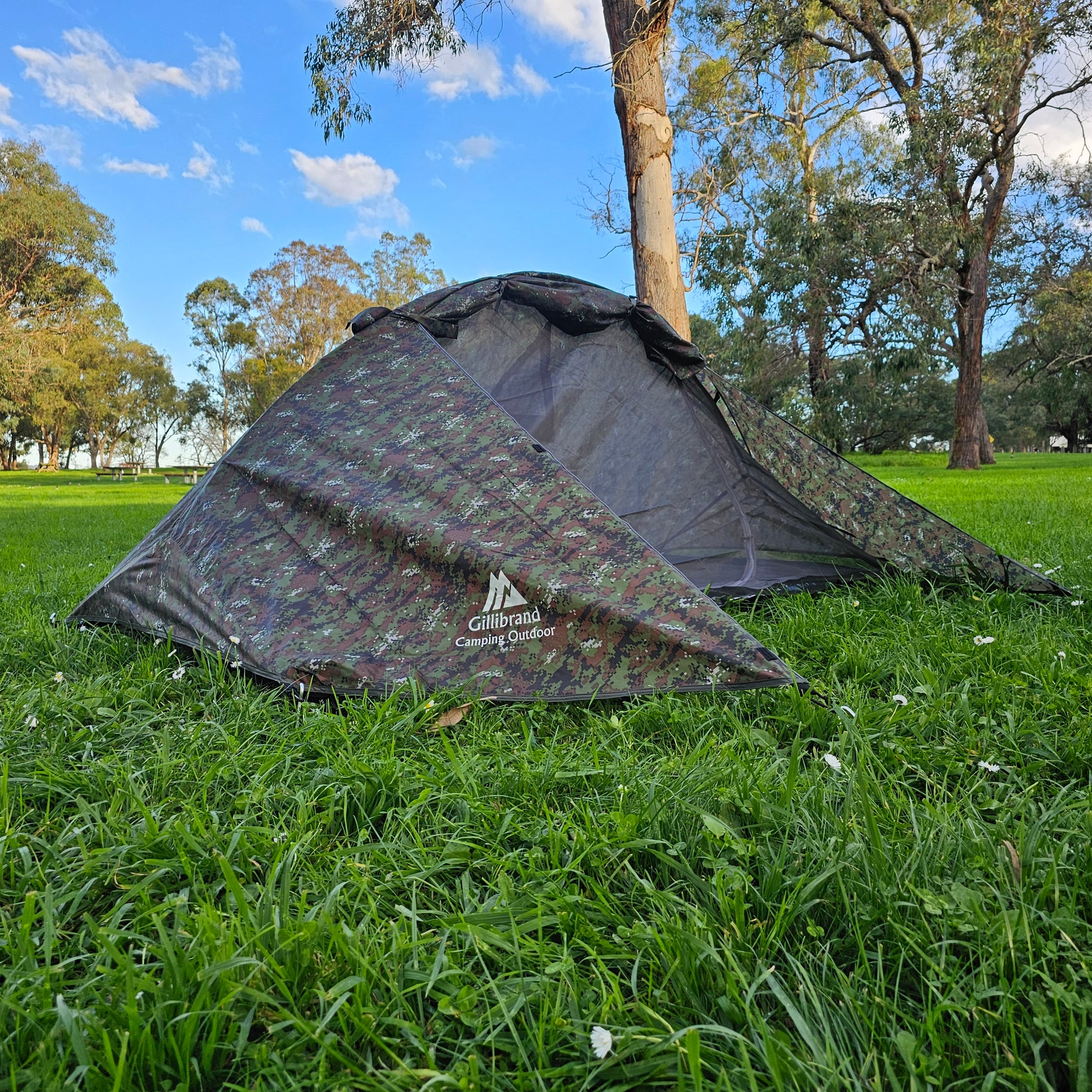 - **High-Quality Flysheet:** The polyester flysheet has a 5,000 mm water column rating and taped seams, ensuring superior water resistance and durability. The camouflage design blends seamlessly with natural surroundings.