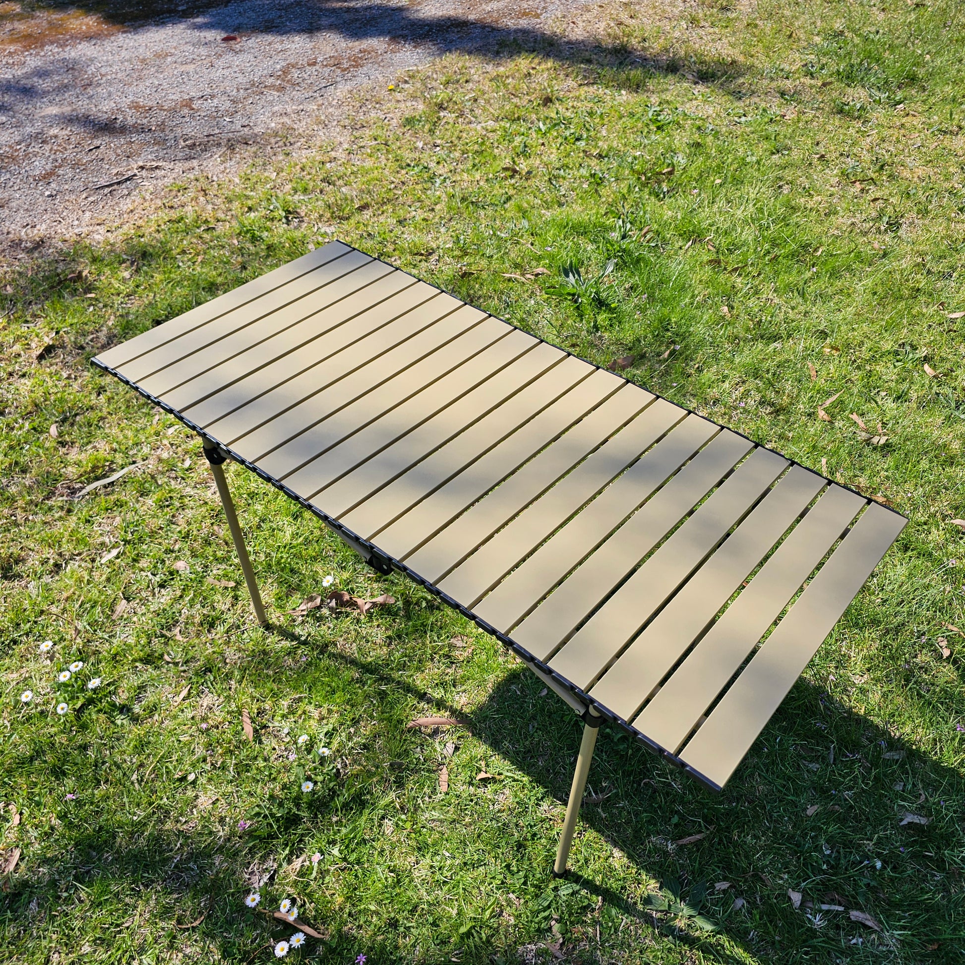 Heat-resistant ! Easy to set-up! Durable and strong! Portable and foldable! Aluminum Camping Table with heat resistant top is portable and lightweight. Made of heat-dissipating aluminum, the table top can withstand high heat temperatures. Great for camping, tailgating, RV’ing or any outdoor use!